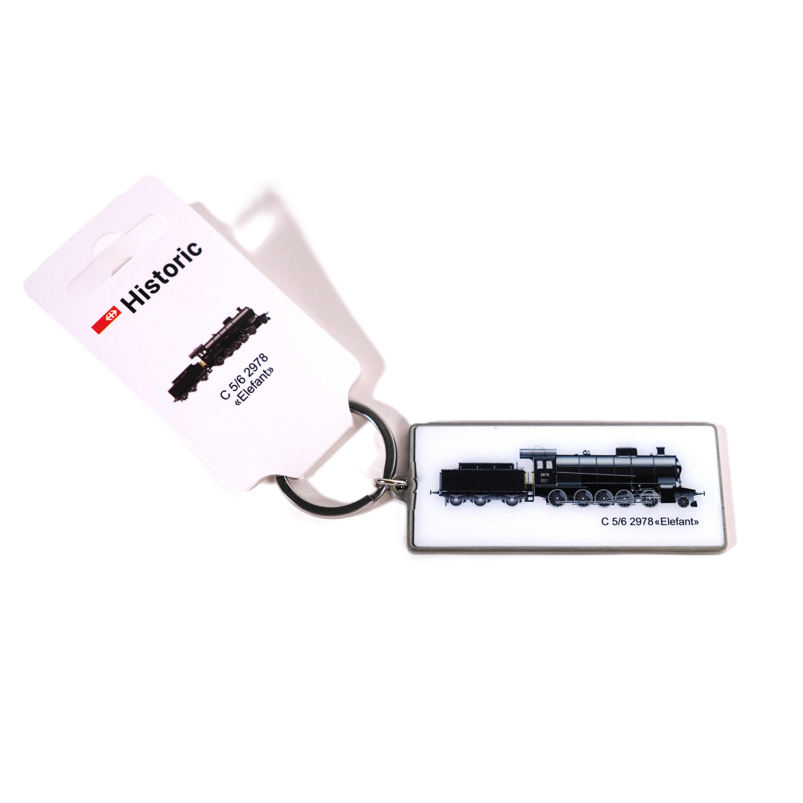 Metall-Schlüsselanhänger mit der Typenskizze der Dampflokomotive
